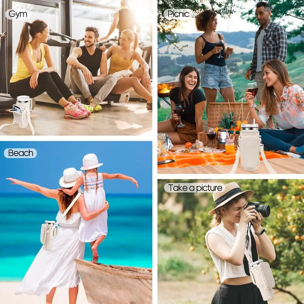 Gehen Sie nie wieder ohne Ihr Lieblingsgetränk aus dem Haus, dank unserer Wasserflaschen-Tragetasche. Mit dieser praktischen Tasche können Sie Ihre Wasserflasche überallhin mitnehmen und so sicherstellen, dass Sie den ganzen Tag über hydriert bleiben. Egal, ob Sie ins Fitnessstudio gehen, wandern oder Besorgungen machen, mit dieser Tragetasche haben Sie Ihre Trinkflasche immer in Reichweite.